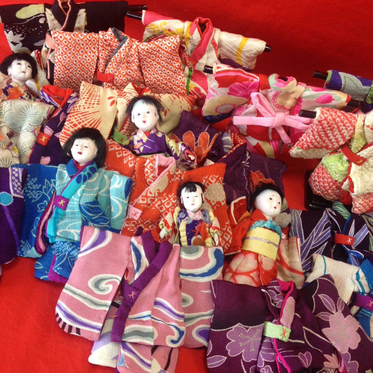 たいせつなお人形のために、ひと針ひと針、丁寧に心を込めて製作した人形着物たち。